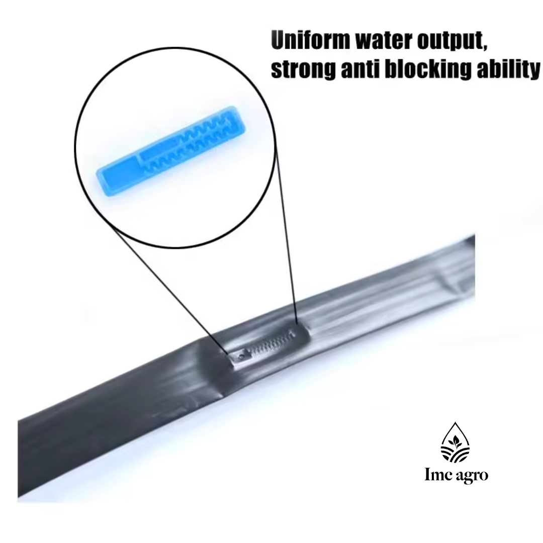 La cinta de goteo o línea de riego IMC AGRO es una manguera para conducción de riego. Es utilizada para uso agrícola en riego por goteo. Despliega Goteo uniforme cada 10cm sobre el área determinada. Mantiene uniformidad sobre el recorrido total del tubo inclusive en pendiente. Dentro de las aplicaciones más comunes, es empleado para riego de cultivos, campo abierto, huertas e invernaderos. Es de fácil instalación, operación y desarme.